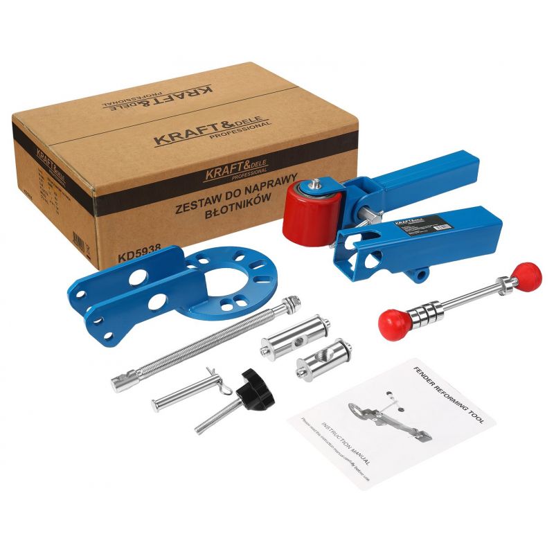 KD5938 este un kit profesional conceput pentru repararea si indreptarea pasajelor rotilor si aripilor masinii. Dispozitivul va permite sa pregatiti rapid pasajul rotii pentru anvelope mai late si sa aliniati cu precizie elementele caroseriei dupa deteriorarea sau deformarea caroseriei. Constructia robusta si componentele reglabile asigura confort si siguranta in timpul operatiunilor de service.