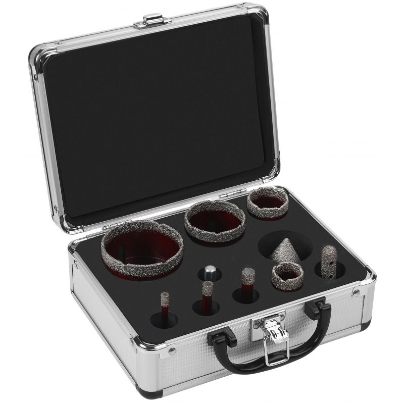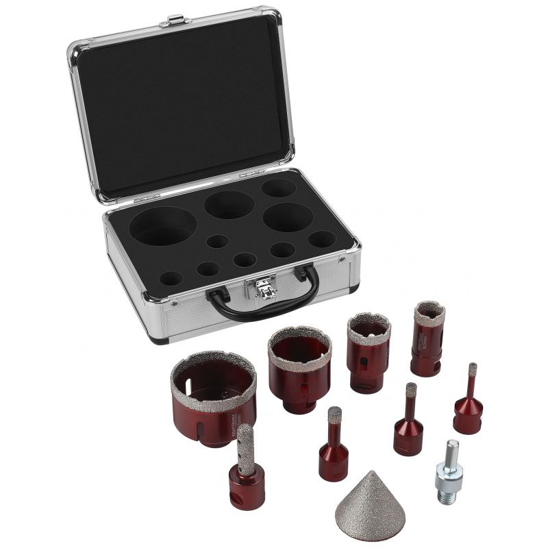 Setul de carote KD12642 diamantate KRAFT&DELE este un set complet de instrumente pentru gaurirea precisa a gaurilor in materiale dure, cum ar fi ceramica, piatra portelanata. Datorita diferitelor diametre ale ferastraului cu gaur, frezei conice si adaptorului - munca devine rapida, precisa si confortabila.