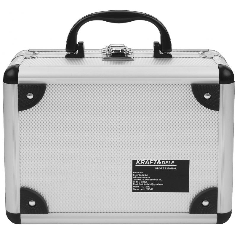 Componentele setului au fost ambalate cu grija intr-o cutie robusta, cu maner de transport si catarama incuiabila, ceea ce faciliteaza organizarea uneltelor si depozitarea lor in siguranta.