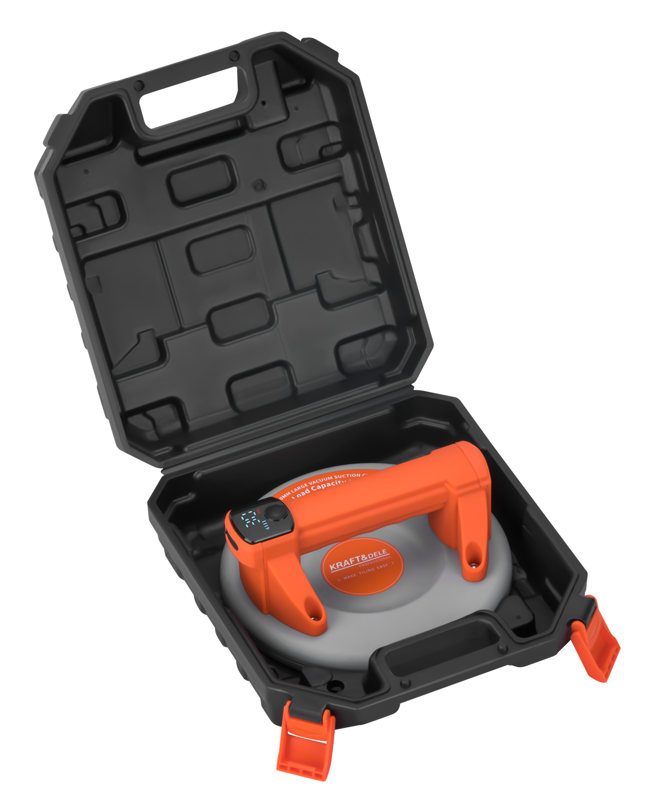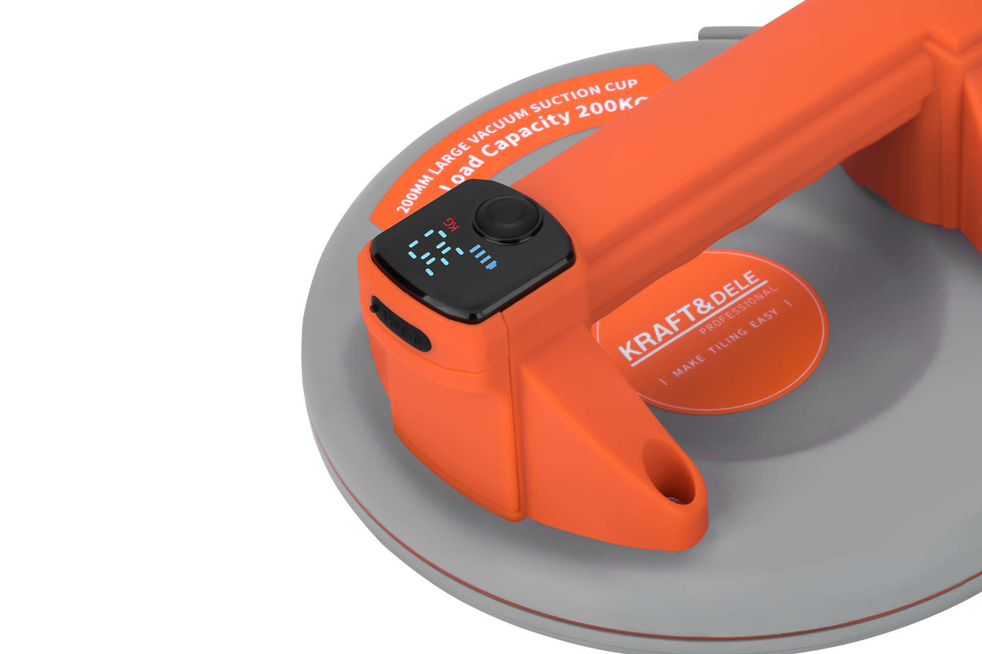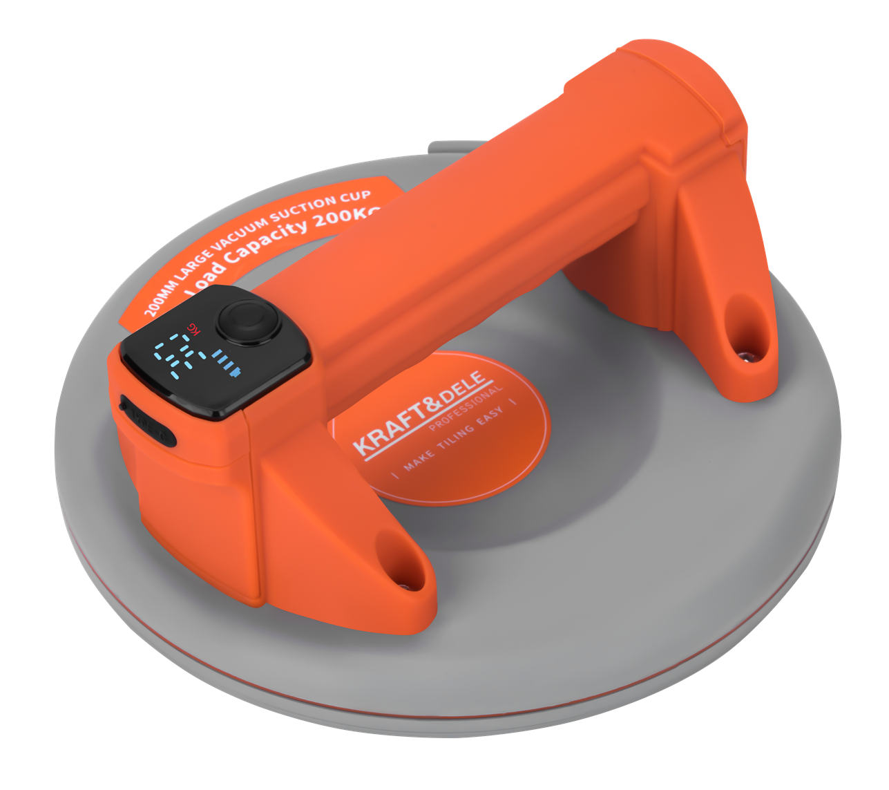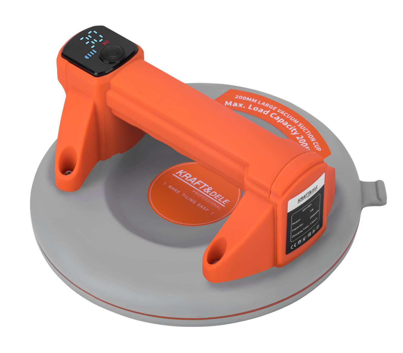 KD11964 este o ventuza fara fir compacta si puternica, cu un diametru de 200 mm (8 inchi) si o capacitate maxima de incarcare de pana la 200 kg. Dispozitivul este proiectat pentru transportul in siguranta al elementelor cu o suprafata neteda, cum ar fi placi de sticla, metal sau piatra.