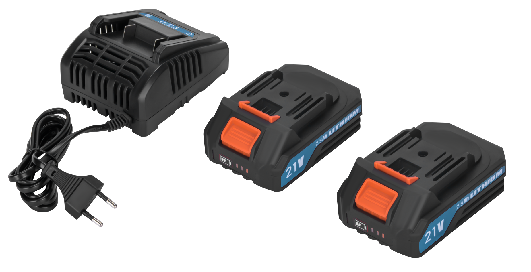 Modelul WDS2694 este echipat cu o baterie puternica de 21V cu o capacitate de 2,5 Ah, care permite un timp lung de lucru fara a fi nevoie sa va conectati la retea. Un incarcator de 230V/50Hz este, de asemenea, inclus pentru realimentare rapida.