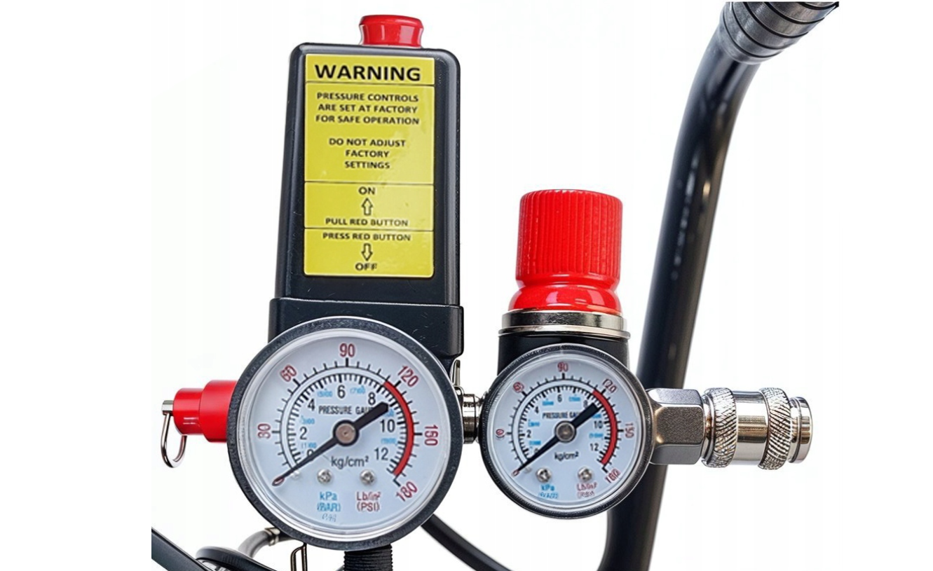• Ergonomic - are un reductor de presiune echipat cu un mecanism inovator de reglare, 2 manometre mari amplasate pe compresor intr-o pozitie care faciliteaza citirea parametrilor si un robinet de scurgere convenabil de utilizat.
