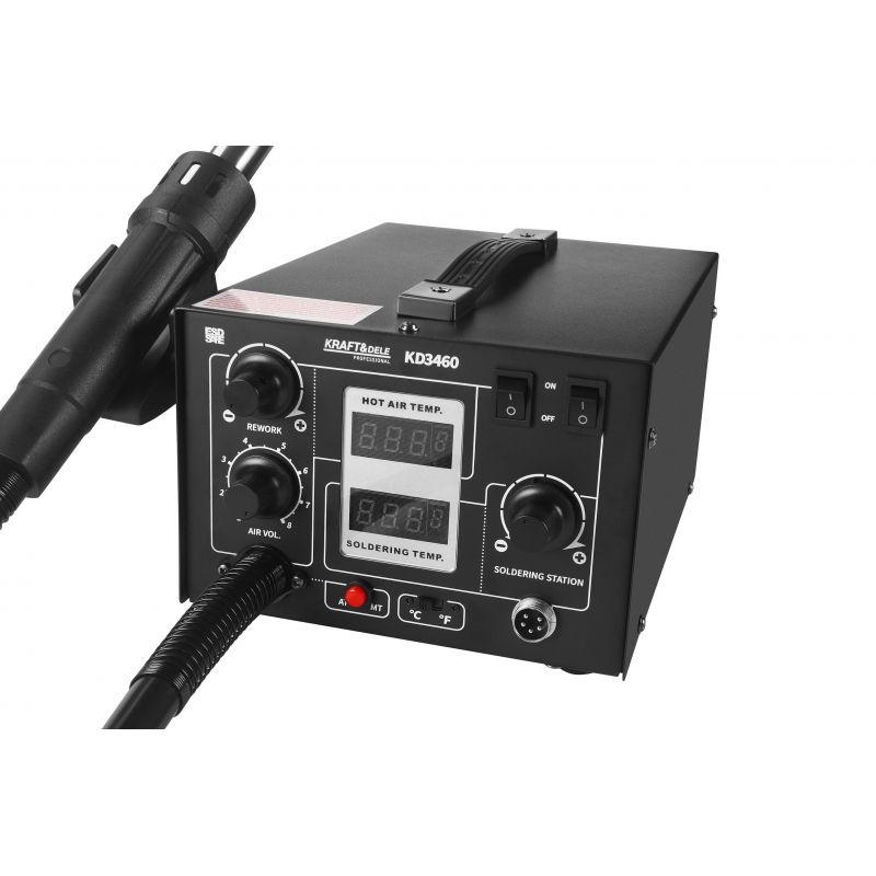 KD3460 este o statie moderna si multifunctionala de sudare a plasticului care combina functionalitatea unei statii de lipit si a unei statii de aer cald. Dispozitivul este conceput pentru aplicatii de service profesional, dar va functiona bine si in atelierele de hobby si reparatii.