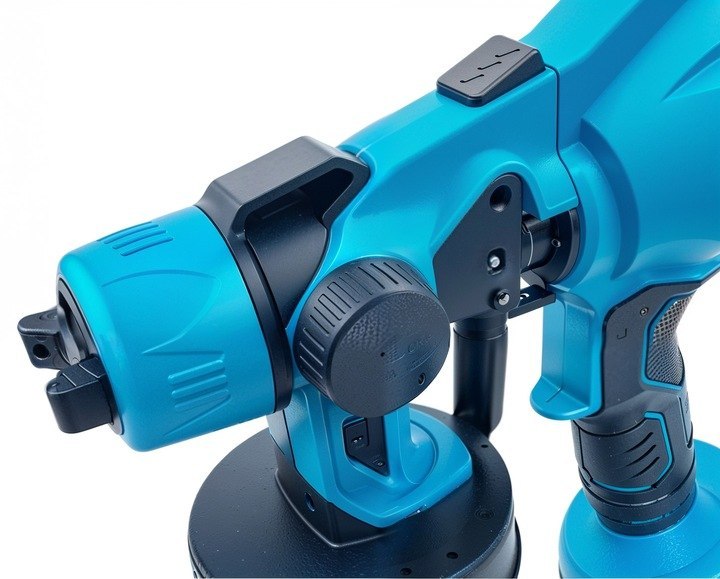 • Butonul de control al debitului de vopsea va permite sa reglati cu precizie cantitatea de culoare iesita pentru diferite proiecte. Acest lucru permite un efect de pulverizare mai bun, minimizand pierderile de vopsea si crescand eficienta muncii.