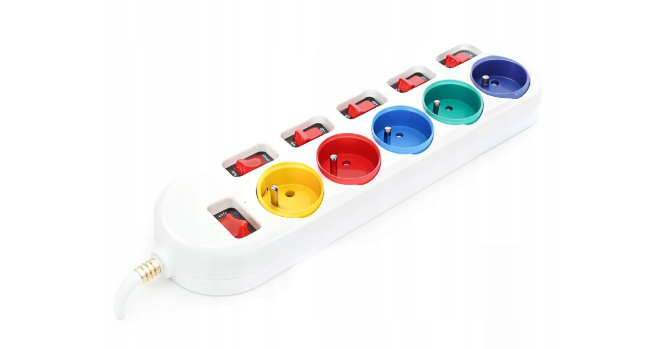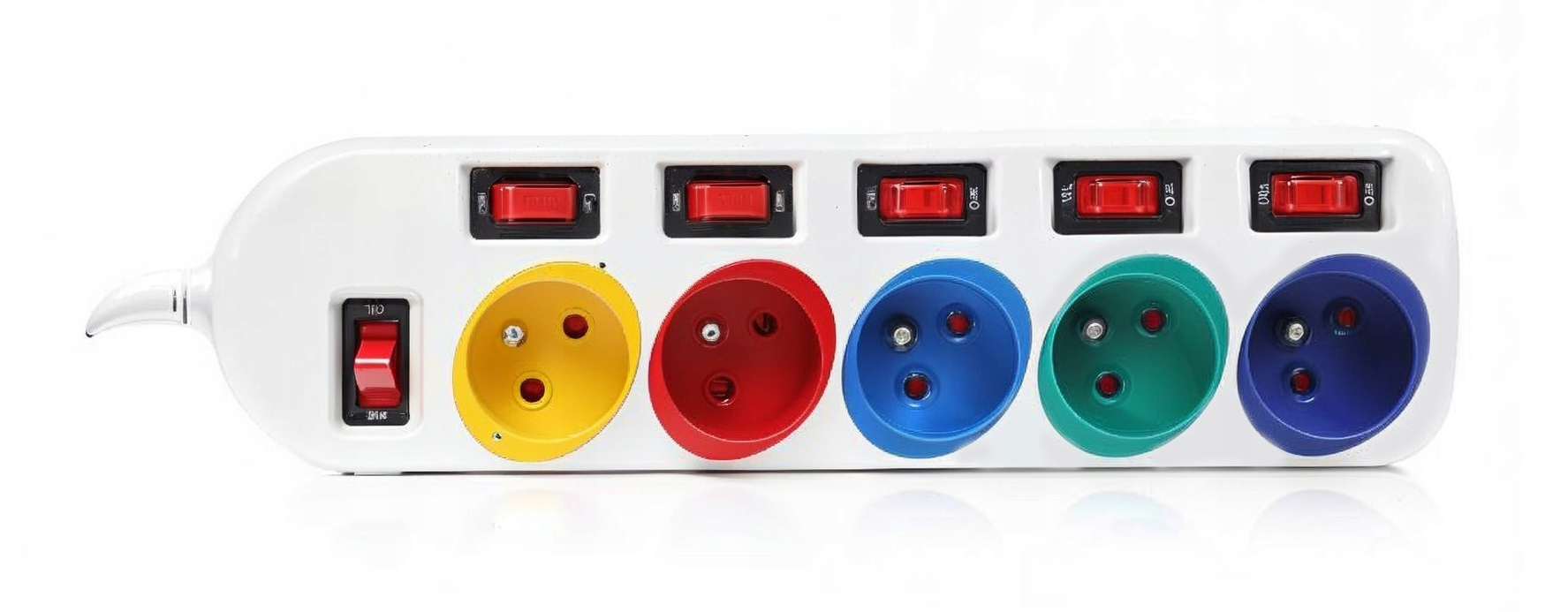 Prelungitor multicolor cu intrerupatoare, 3 m, 3500 W, Ondragon OD-FD1-05K-3