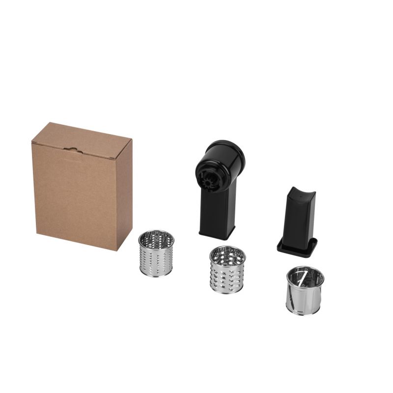 •  Setul include un tocator cu trei tamburi interschimbabili pentru taierea si tocarea legumelor.
