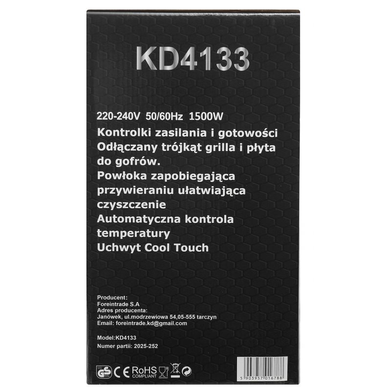 Aparatul electric de paine KRAFT&DELE KD4133 este un aparat de bucatarie multifunctional care faciliteaza pregatirea rapida a unei varietati de feluri de mancare. Cu plite interschimbabile, puteti pregati cu usurinta vafe crocante, paine prajita aurie sau mancaruri suculente la gratar. Designul compact si solutiile practice fac ca dispozitivul sa fie perfect pentru orice bucatarie.