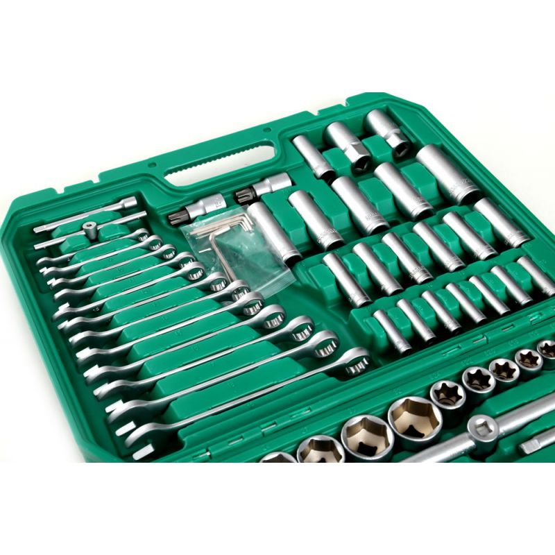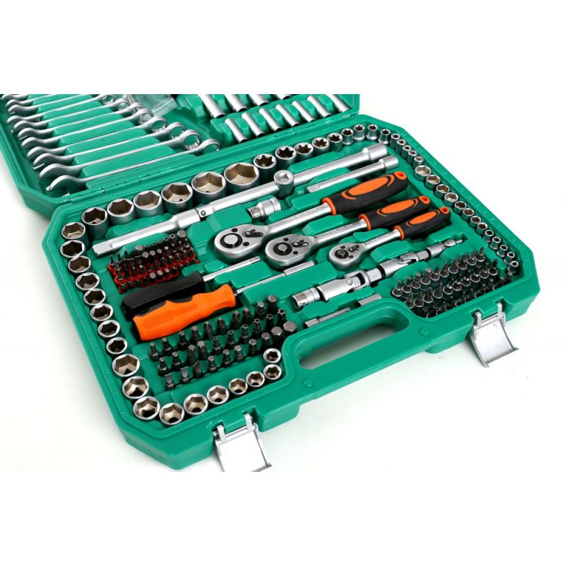 Un set extrem de extins de scule de la marca Kraft & Dele cu simbolul KD307. Uneltele se caracterizeaza prin manopera solida, materiale durabile si o carcasa la indemana in care fiecare instrument isi are locul. Pentru si mai mult confort de lucru, setul include un set de clichete cu 72 de dinti.