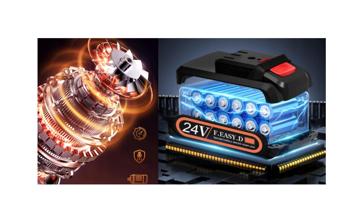 Datorita alimentarii bateriei, dispozitivul este complet wireless. Doua baterii de 24V prelungesc durata de functionare si elimina necesitatea prelungitoarelor. Designul usor (2 kg) si manerul ergonomic asigura o manevrabilitate confortabila, chiar si in timpul utilizarii prelungite.