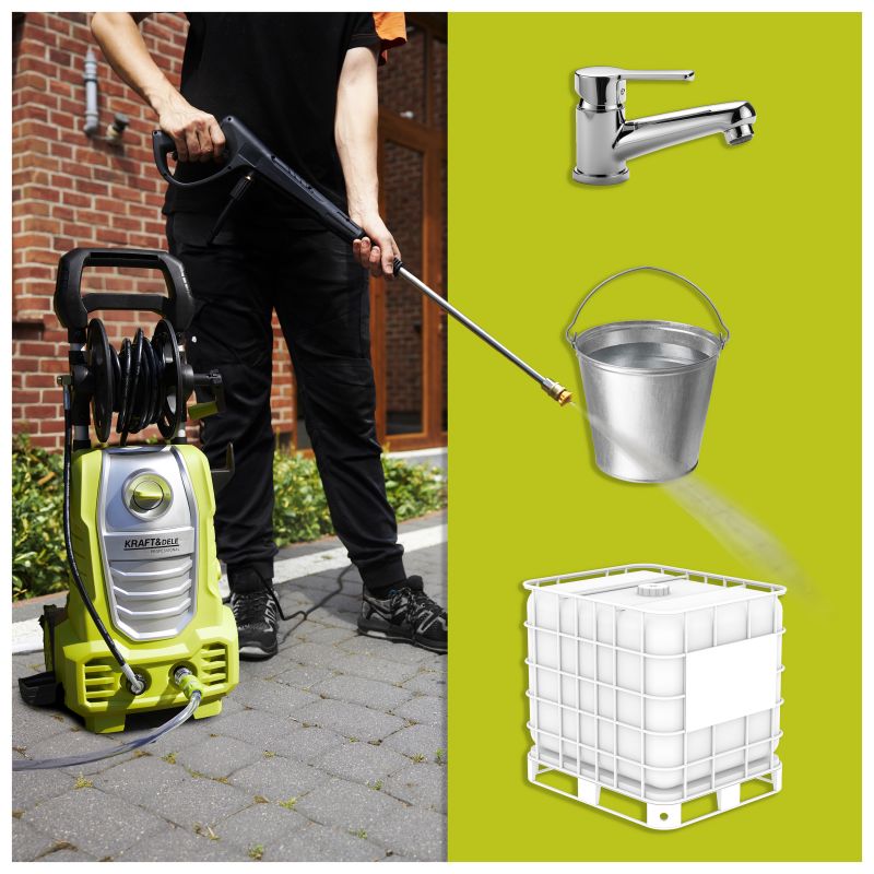 Aparatul de spalat cu presiune Kraft&Dele KD423 este o unealta versatila care poate fi utilizata intr-o varietate de sarcini de curatare si intretinere. Este folosit pentru curatarea fatadelor, teraselor, mobilierului de gradina, masinilor etc. Designul usor si cablul de alimentare lung de 5 m fac ca lucrul cu masina de spalat marca noastra sa fie placut si simplu. Datorita pompei de aspiratie, puteti lua apa, de exemplu dintr-o fantana, dintr-o galeata.