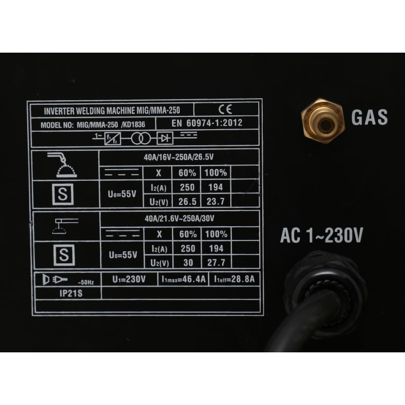 • Curent (A): 40-250 (MIG)/ 50-200 (MMA)
