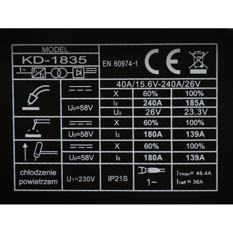 Aparat de sudura tip invertor MIG / MAG MMA / TIG LIFT, 180 A, Kraft&Dele KD1835