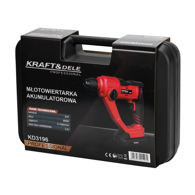 Ciocan rotopercutor cu acumulator, 21 V, 2 J, 2 X 4Ah, Kraft&Dele KD3196