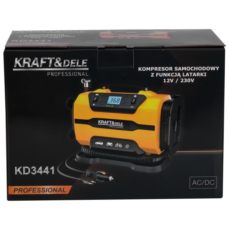 Compresor auto cu lanterna, 12 / 230 V, Kraft&Dele KD3441