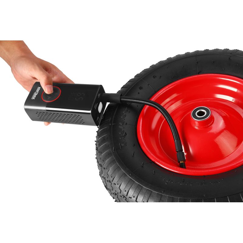Compresorul este echipat cu un ecran LCD usor de citit care permite controlul presiunii in diverse unitati: PSI, BAR, KPA, KG/CM². Functia de oprire automata atunci cand presiunea setata este atinsa asigura siguranta si confortul la locul de munca. Amprenta sa redusa si puterea USB-C o fac extrem de mobila si mereu gata de utilizare.
