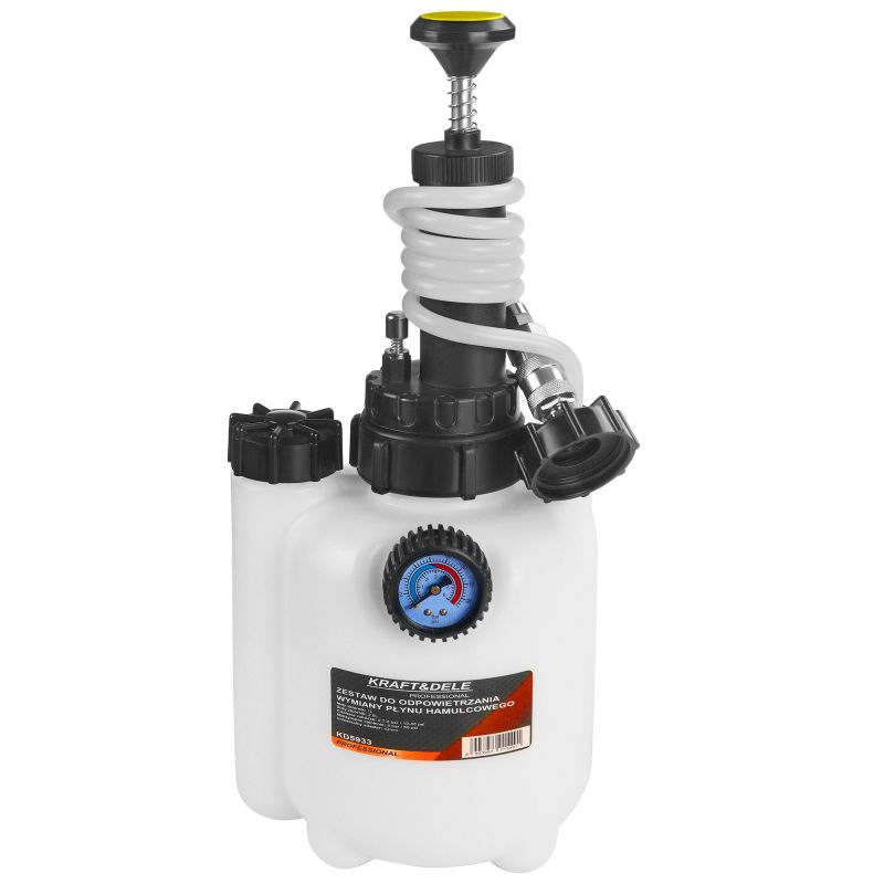 Kitul profesional KD5933 va permite sa purjati rapid si convenabil sistemele de franare si sa schimbati lichidul de frana sau ambreiaj in autoturisme, furgonete si motociclete. Este un instrument indispensabil in fiecare atelier si garaj.