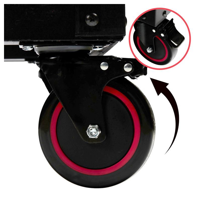 Roti mari echipate cu o blocare automata, precum si o frana care asigura confort de siguranta atunci cand dulapul este agitat chiar si pe pante mici.