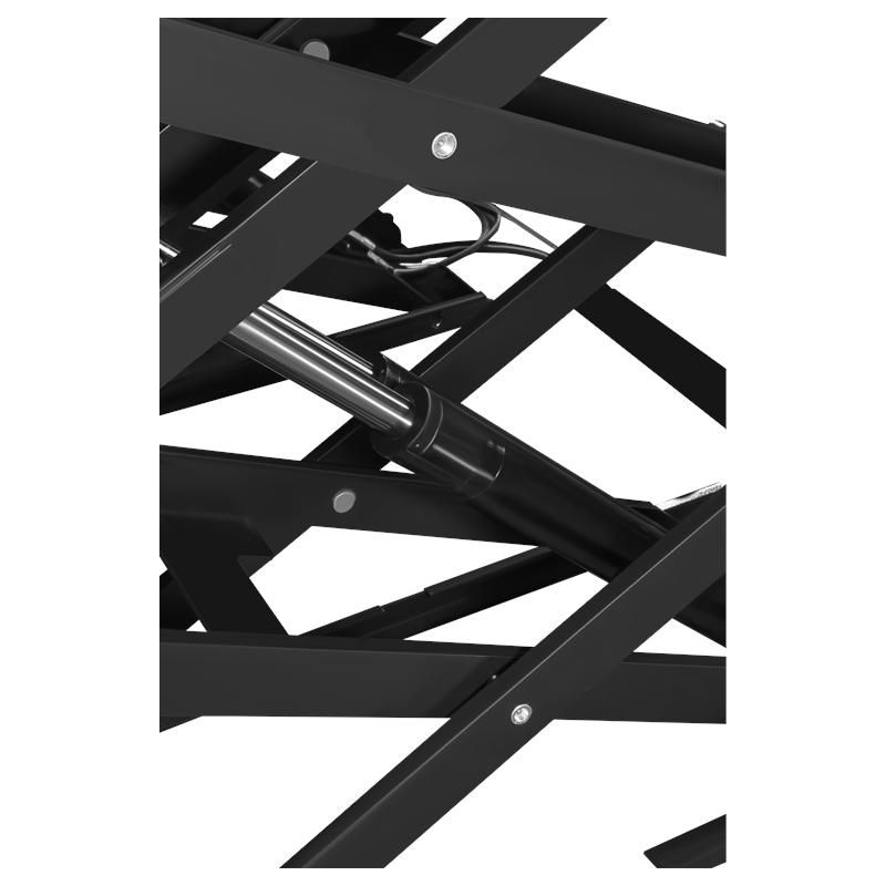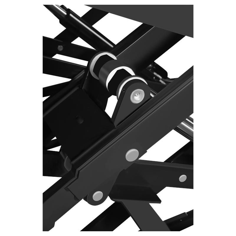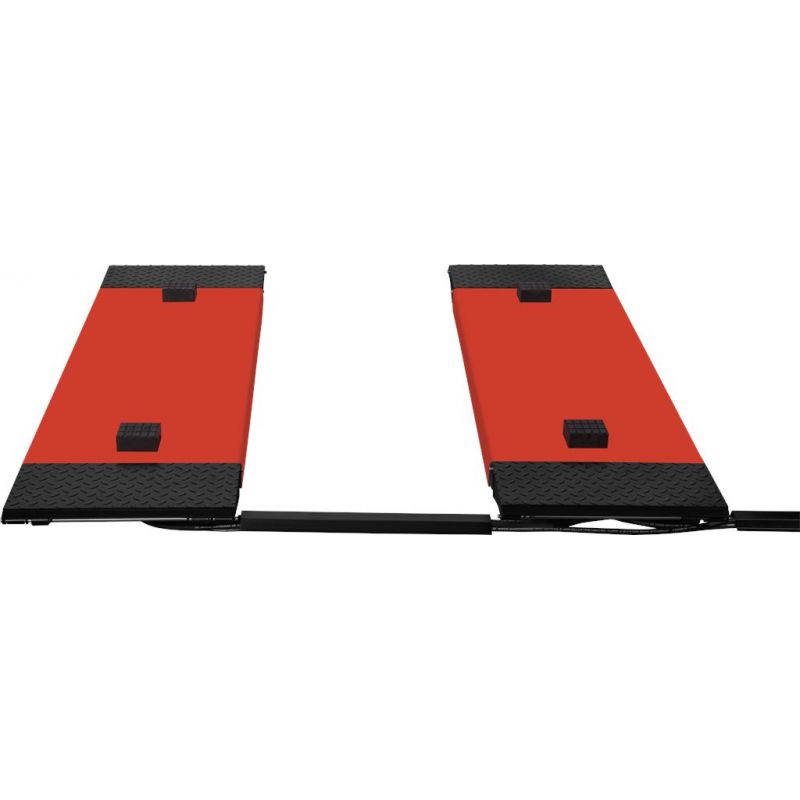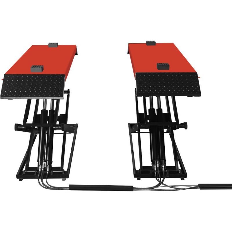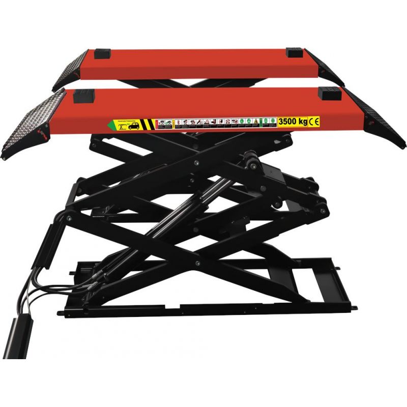 Aparatul este echipat cu un intrerupator de limita care impiedica depasirea inaltimii de ridicare admise. Constructia robusta cu o greutate de 900 kg si o platforma stabila cu o lungime de 2080 mm si o latime de 1550 mm garanteaza o munca sigura si confortabila. Datorita inaltimii initiale reduse a platformei (110 mm), cricul va functiona bine si cu vehicule cu suspensie redusa.