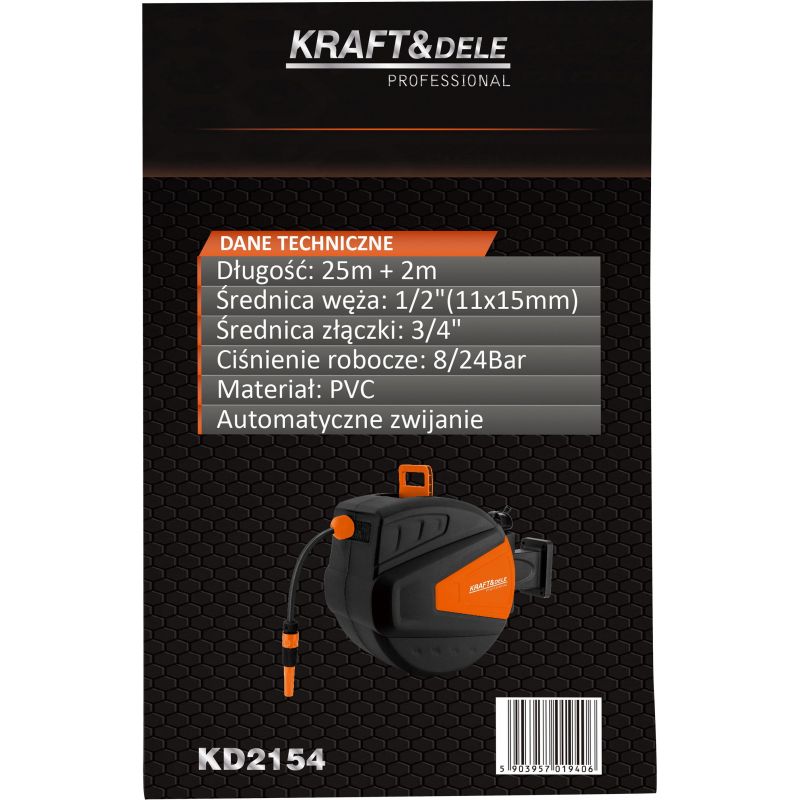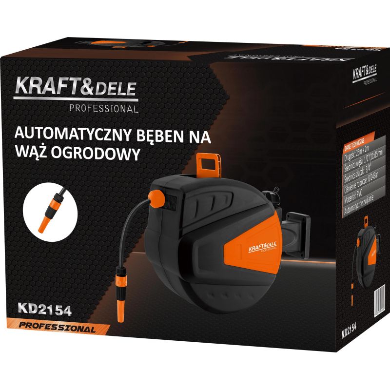 Furtun de gradina retractabil, 25 m + 2 m, 1 / 2", Kraft&Dele KD2154