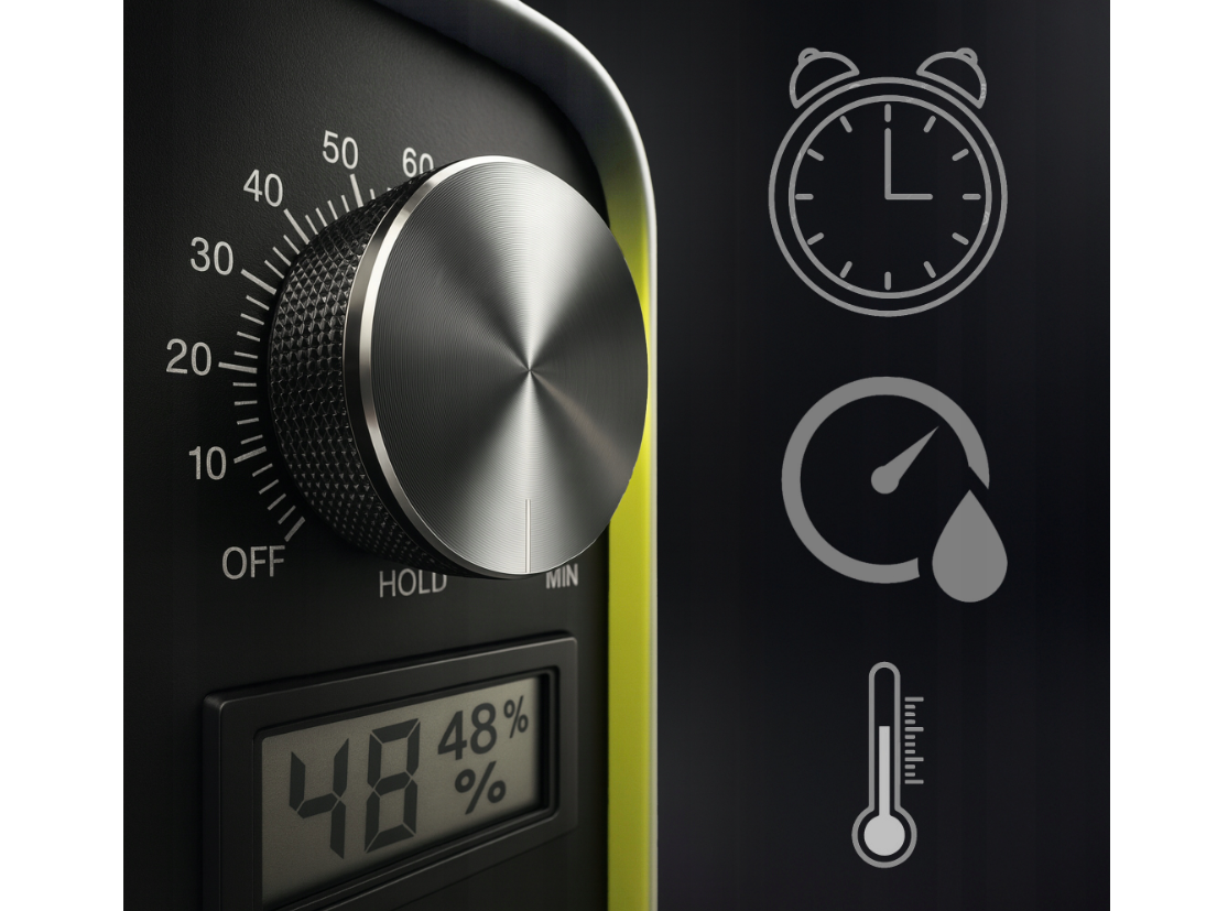 Ozonatorul este echipat cu un termometru independent, masoara de asemenea valorile umiditatii pe LCD