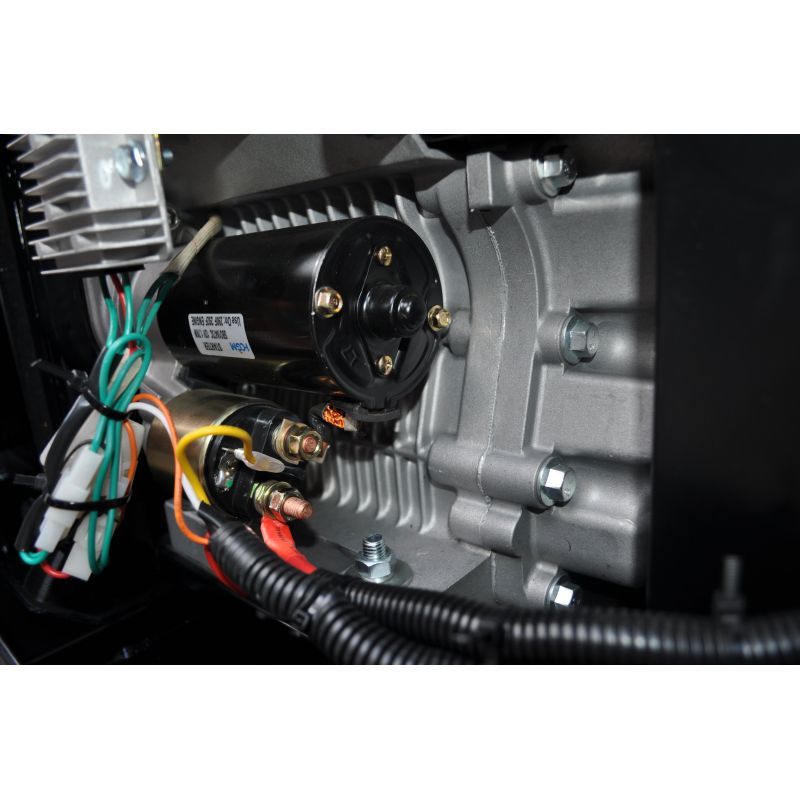 Echipat cu un motor diesel cu doi cilindri, infasurare 100% cupru si pornire electrica, garanteaza fiabilitate si eficienta ridicata. Generatorul are protectie la suprasarcina, stabilizare de tensiune si frecventa, precum si indicatori de tensiune, suprasarcina si nivel de ulei. Rotile de transport incorporate faciliteaza deplasarea.