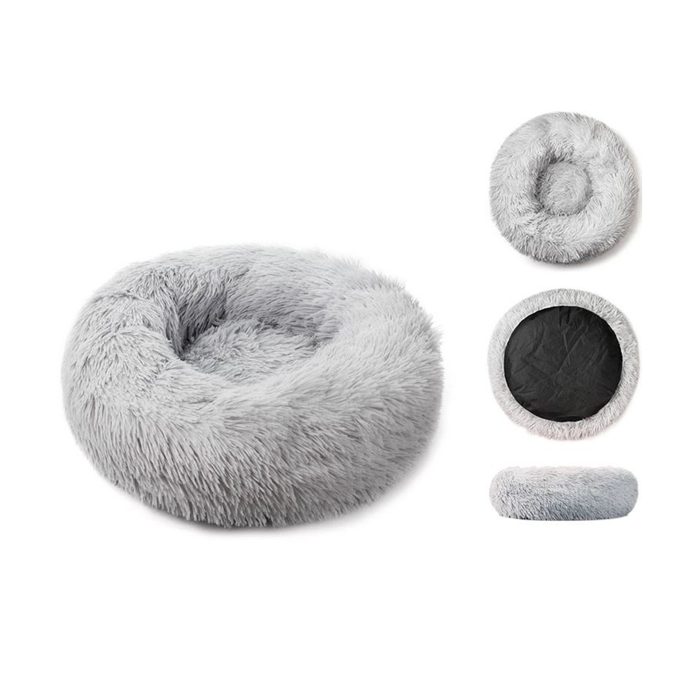 Partea inferioara a canapelei de caine de plus a fost acoperita cu material antiderapant.