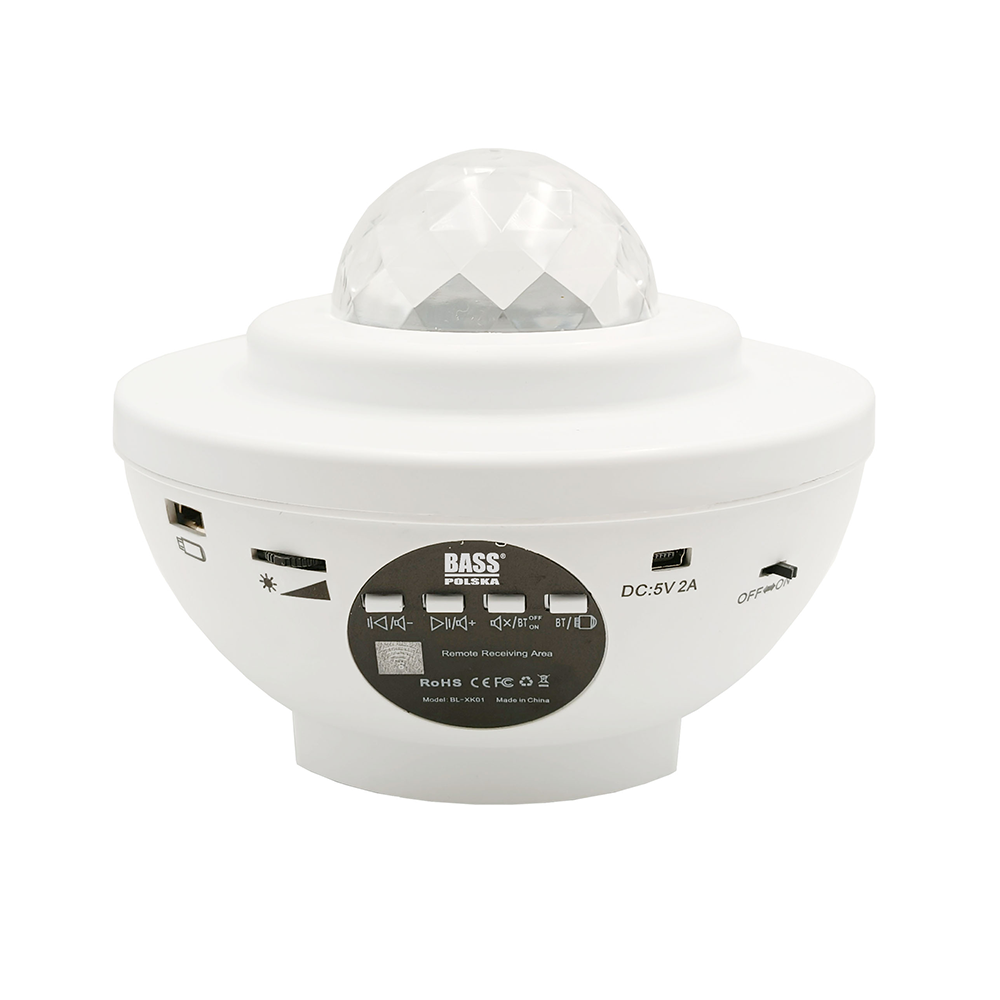 Lumina proiectorului stea pentru copii este o jucarie interactiva minunata, care va fi un cadou minunat atat pentru copilul mic, cat si pentru copilul mai mare. Proiectorul pentru copii Bass Poland poate fi folosit ca lumina de noapte, proiector cu stele si valuri si difuzor Bluetooth. Expuneti o galaxie colorata pe peretele sau tavanul camerei copiilor! Transforma petrecerea aniversara a copilului tau intr-o calatorie de neuitat in spatiu! Oferiti-le copiilor multa distractie schimband si amestecand culorile stelelor! Proiectorul pentru copil are patru lumini colorate (albastru, rosu, alb, verde). Redati melodiile preferate ale copilului conectandu-va la difuzor prin Bluetooth.
