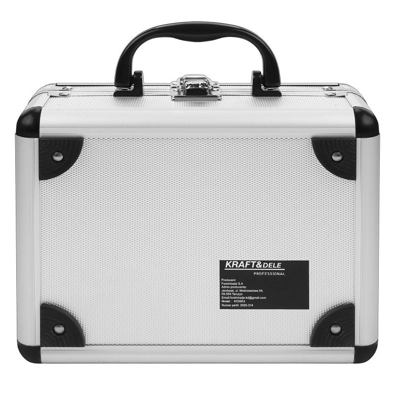Componentele setului au fost ambalate cu grija intr-o cutie robusta, cu maner de transport si catarama incuiabila, ceea ce faciliteaza organizarea uneltelor si depozitarea lor in siguranta.