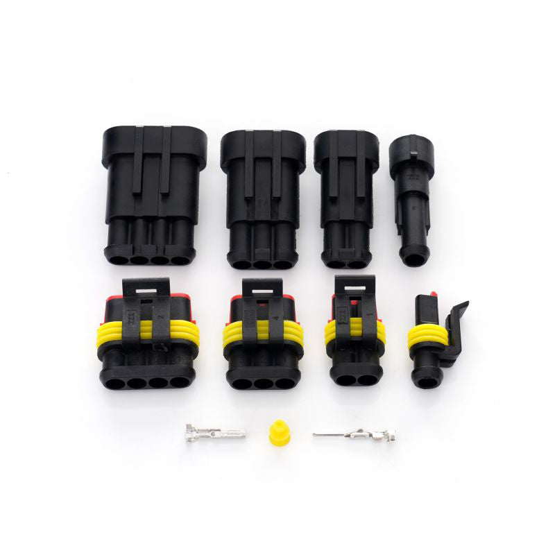 6 x conector carcasa tata, 6 x conector carcasa mama, 12 x pin tata, 12 x pin mama, 24 x mufa siliconica impermeabila