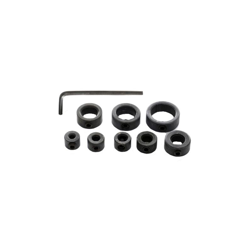 Un set de opriri de foraj Kraft & Dele model KD11253 este folosit pentru a face un numar mare de gauri de aceeasi adancime. Este un inel metalic care este plasat pe burghiu si este blocat pe burghiu printr-un surub in manson.
