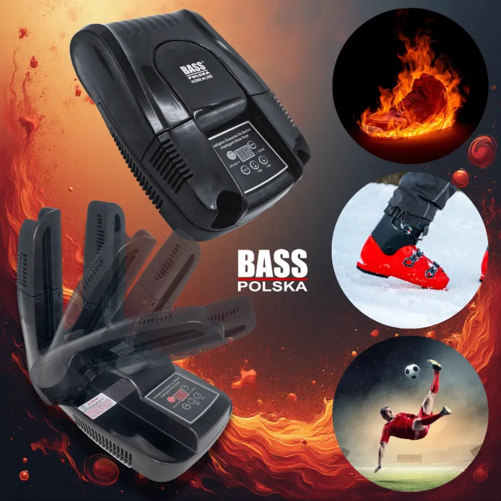 Uscatorul de pantofi Bass Polska BH 11072 este un dispozitiv modern care combina uscarea rapida cu aerul cald, folosind functia de ozonare. Datorita acestui fapt, elimina eficient umezeala, reimprospateaza pantofii si elimina mirosurile neplacute. Este o solutie practica pentru uz casnic, pentru sportivi, utilizatori de incaltaminte de lucru, precum si pentru excursii sau sezoane de iarna.
